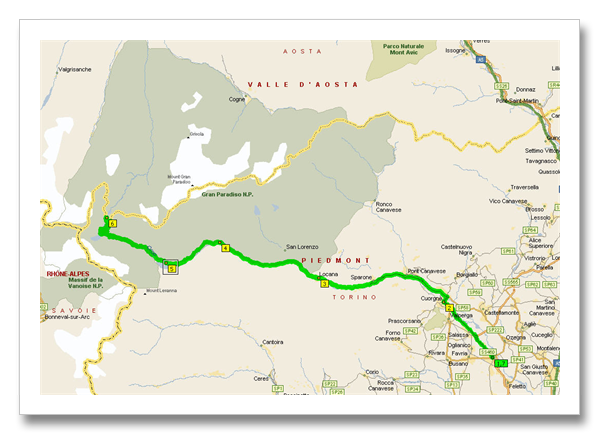 I put Rivarolo as a starting point for those arriving Turin think it is a necessary step, from Pont onwards there are no more doubts, there is only one road and there is no danger of being lost ... ;)