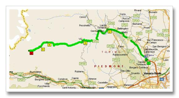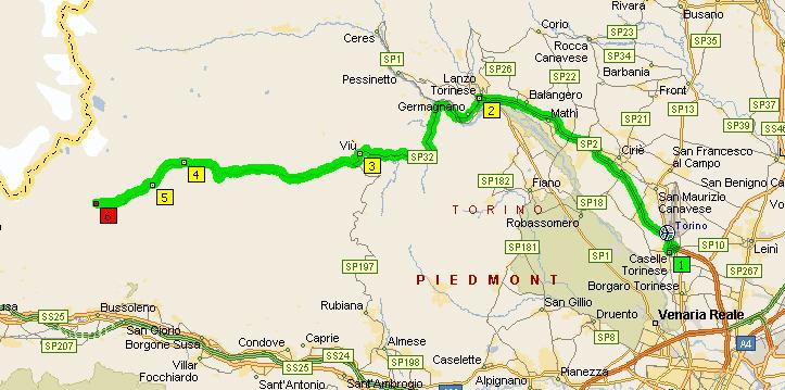 Here is the map of the tour, with arrival and departure from Susa, for a total of 209 Km
